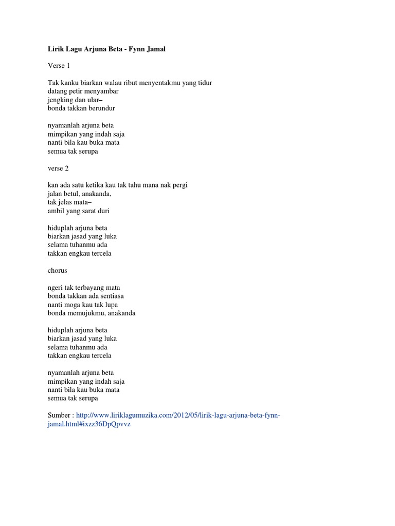 Malah penghayatannya semasa menyanyikan lagu ini yang penuh dengan emosi meamng tidak disangkal merupakan anatra karya yang sangat baik dari. Arjuna beta merupakan salah satu karya beliau yang boleh dikatakan ber'hantu'. Latar belakang pelaksanaan praktik kerja industri (prakerin) adalah sebuah pelatihan dan pembelajaran yang dilaksanakan di dunia usaha atau dunia industri yang relevan dengan kompetensi keahlian yang dimilikinya masing masing, dalam upaya meningkatkan mutu sekolah menengah. Latar belakang adalah dasar atau titik tolak untuk memberikan pemahaman kepada pembaca atau pendengar mengenai apa yang ingin kita sampaikan. Now we recommend you to download first result fynn jamal arjuna beta lyrics audio mp3.