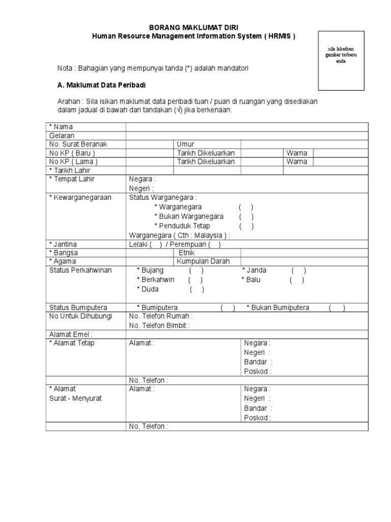 Contoh resume 1 resumé profile name please paste your latest photo here telephone no. Sekiranya didapati maklumat yang diberikan tidak benar, saya bersetuju agar pencalonan atau pelantikan saya dibatalkan. Borang maklumat diri panitia kh. Sila isi borang baru jika ada kesilapan. · web viewpilihan rancangan pengajian maklumat peribadi maklumat akademik maklumat aktiviti kelayakan profesional.