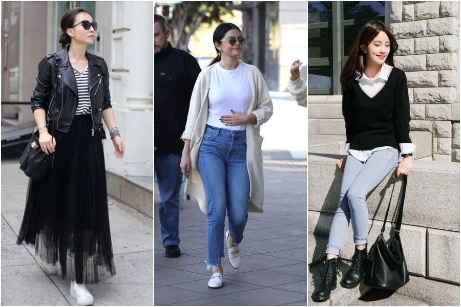 Hitam Dan Putih Lipat Baju / Padukan dengan sepatu warna putih dan tas warna hitam.